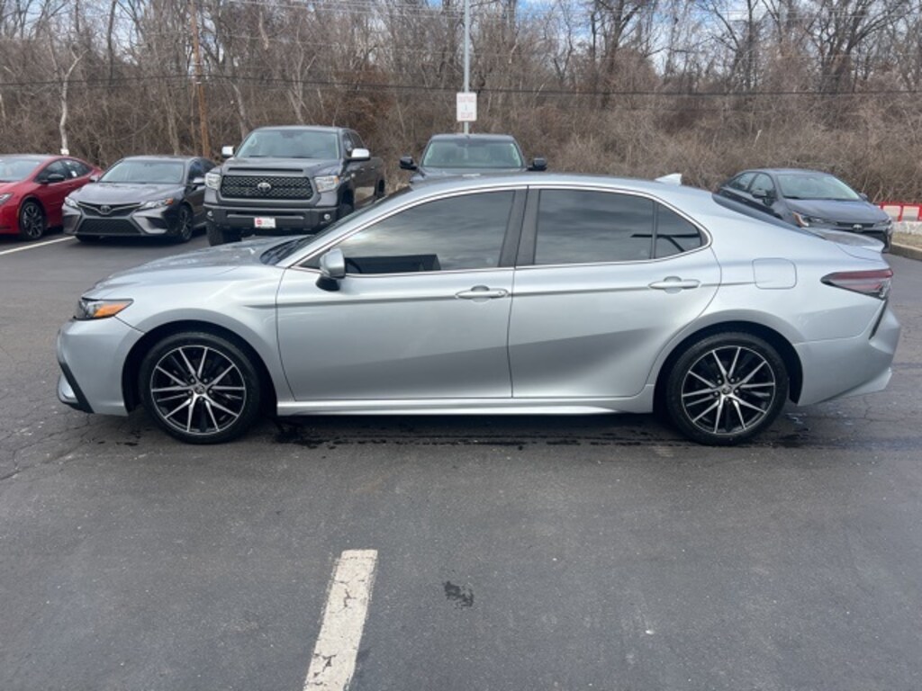 Certified. **TOYOTA SILVER CERTIFIED!!**, Black w/Fabric Seat Trim w/Sport SofTex, Alloy wheels, Apple CarPlay/Android Auto, Wheels: 8.0J x 18" Black Machined-Finish Alloy. Celestial Silver Metallic 2021 Toyota Camry SE FWD 8-Speed Automatic 2.5L I4 DOHC 16V