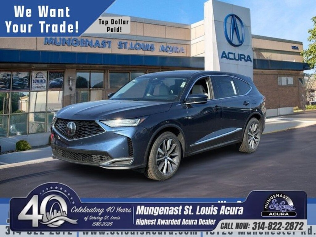 As a premier destination for luxury in Missouri, Mungenast St. Louis Acura is proud to be the nationâs only 33-time Acura Precision Team Award winner, an elite distinction that recognizes our unparalleled commitment to client satisfaction, sales, and service. Since opening as one of the country's first Acura dealerships in 1986, we have consistently ranked among the top performers nationwide, top 15 for new Acura sales and in the Top 5 for Certified Acura Sales. Our team is driven by a legacy of excellence established by our founder, Dave Mungenast Sr., And continues to deliver an award-winning experience backed by the stateâs largest new Acura inventory and a long-tenured staff dedicated to your automotive journey. 19/26 City/Highway MPG
