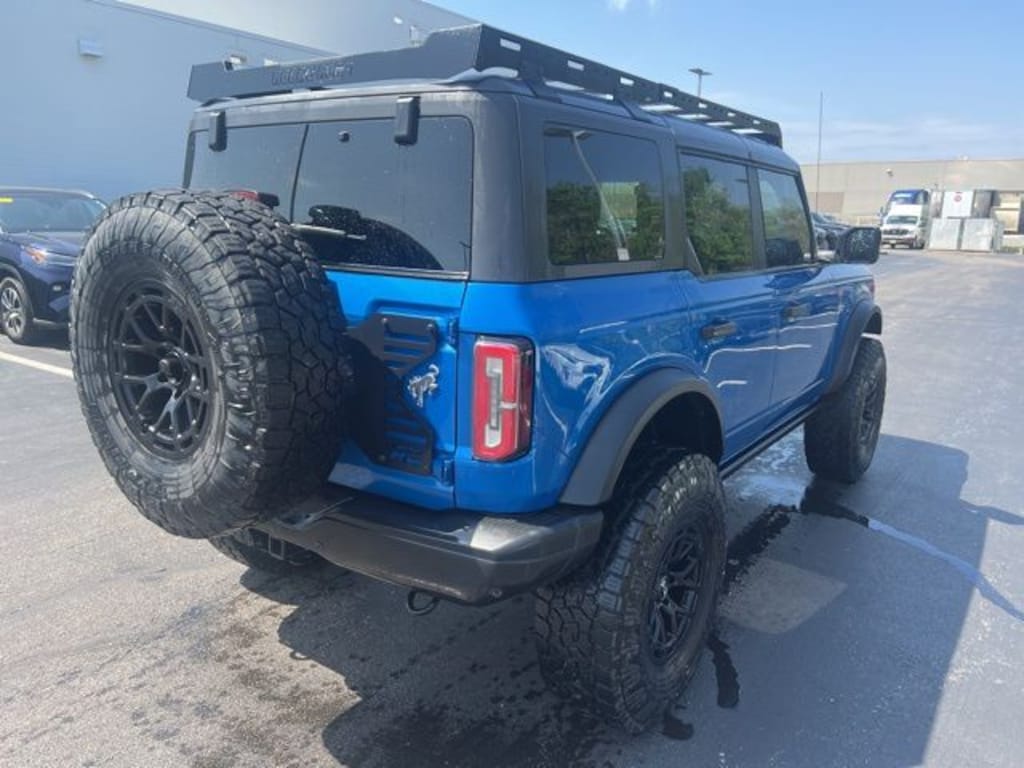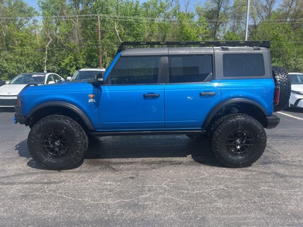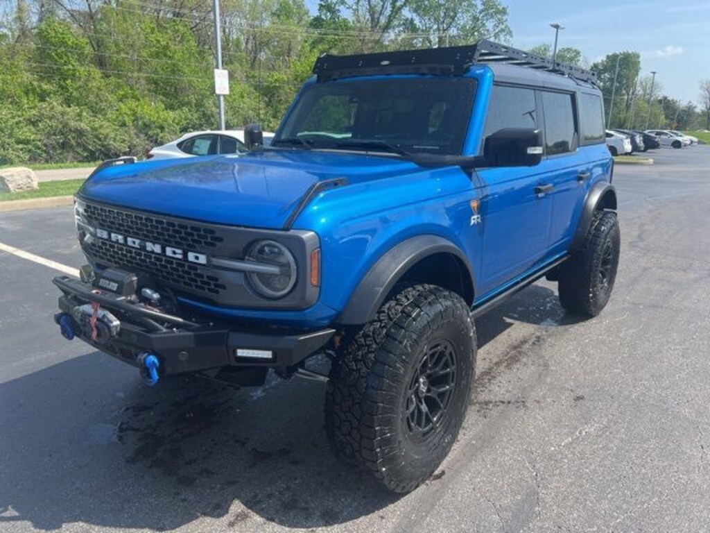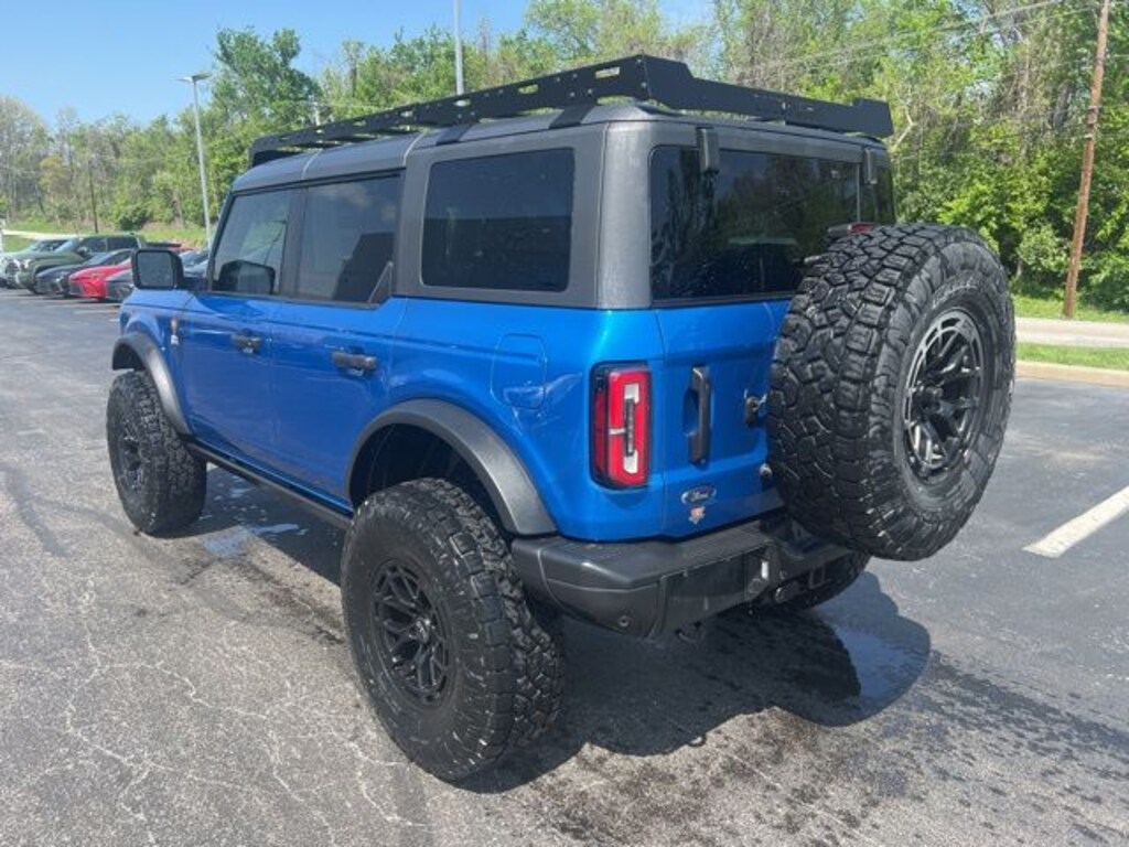 LEATHER, NO ACCIDENT HISTORY ON CARFAX, ~~LIFTED~~, ~~BLACK ALLOY WHEELS~~, ~~VERY NICE INSIDE AND OUT~~, 12" LCD Capacitive Touchscreen w/Swipe Capability, 2-Door Intelligent Access w/Lock/Unlock, 360-Degree Camera, Additional Sound Deadening, Ambient Footwell Lighting, Auto-Dimming Interior Rear-View Mirror, Connected Navigation, Dr & Pass Illuminated Sliding Visor Vanity Mirrors, Dual-Zone Electronic Automatic Temperature Control, Enhanced Voice Recognition, Equipment Group 333A High Package, Front Parking Sensors, Front Row Heated Seats, Information on Demand Panel, Power Outlet - Back Side of Center Floor Console, Rear Parking Sensors, Sideview Mirrors. Velocity Blue Metallic 2022 Ford Bronco Badlands 4WD 10-Speed Automatic 2.7L EcoBoost V6