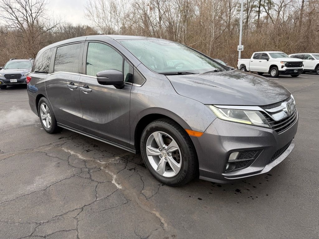 Clean CARFAX. Clean CARFAX, Great Service History!, 3rd Row Seating!, Moonroof!, Heated Leather Seats, Backup Camera!, Bluetooth, Automatic temperature control, Front dual zone A/C, Fully automatic headlights, Garage door transmitter: HomeLink, Low tire pressure warning, Memory seat, Power Liftgate, Radio: 160-Watt AM/FM/HD/SiriusXM Audio System, Rear air conditioning, Remote keyless entry, Wheels: 18" Silver-Painted Alloy. Modern Steel Metallic 2018 Honda Odyssey EX-L FWD 9-Speed Automatic 3.5L V6 SOHC i-VTEC 24V