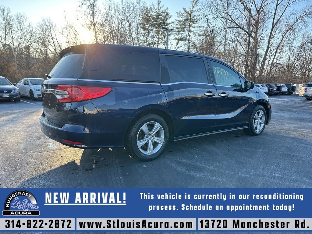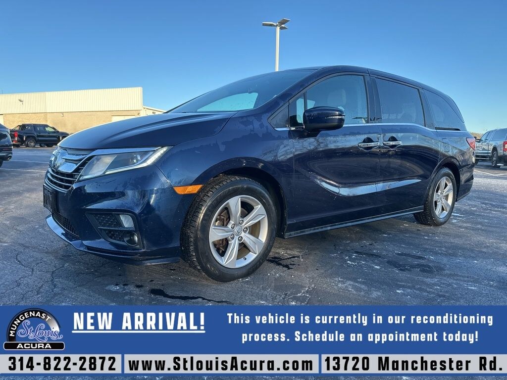 Clean CARFAX. Clean CARFAX, Advanced Safety Features, Blind Spot Monitors, Great Service History!, 3rd Row Seating!, Moonroof!, Heated Leather Seats, Backup Camera!, Bluetooth, Call Dealer to Verify Conditions, 3rd row seats: split-bench, Auto High-beam Headlights, Automatic temperature control, Blind Spot Information (BSI) System warning, Electronic Stability Control, Emergency communication system: HondaLink, Front dual zone A/C, Fully automatic headlights, Garage door transmitter: HomeLink, Illuminated entry, Low tire pressure warning, Memory seat, Power Liftgate, Radio: 160-Watt AM/FM/HD/SiriusXM Audio System, Rear air conditioning, Remote keyless entry, Wheels: 18" Silver-Painted Alloy. Obsidian Blue Pearl 2018 Honda Odyssey EX-L FWD 9-Speed Automatic 3.5L V6 SOHC i-VTEC 24V