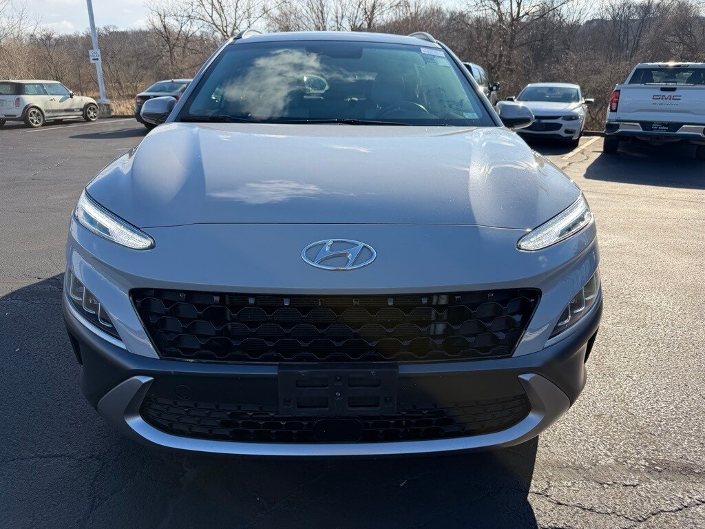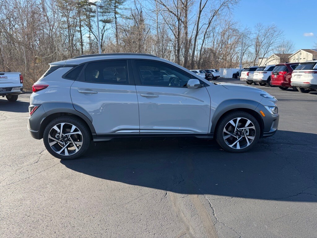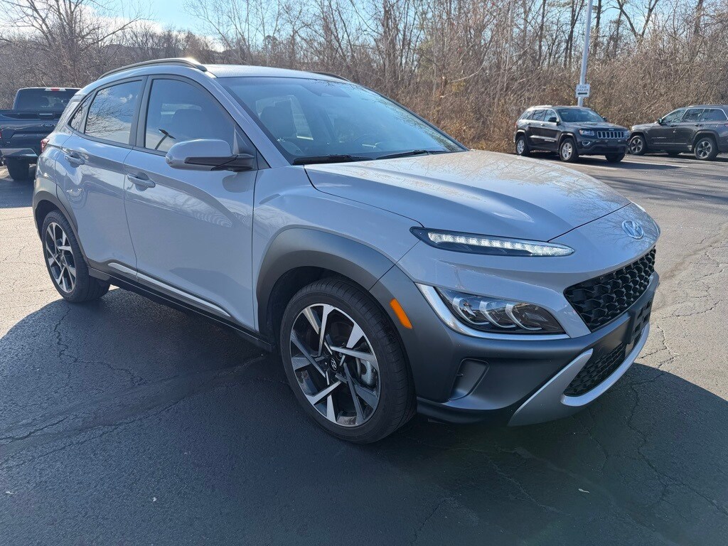 CARFAX One-Owner. Clean CARFAX. CLEAN CARFAX One Owner!, Local Trade!, Advanced Safety Features, Blind Spot Monitors, Great Service History!, AWD!, Apple Carplay / Android Auto, Navigation!, Moonroof!, Heated Leather Seats, Backup Camera!, Bluetooth, Call Dealer to Verify Conditions, 18" x 7.5J Alloy Wheels, 8 Speakers, Auto High-beam Headlights, Automatic temperature control, Emergency communication system: Blue Link Connected Car Service (3-year complimentary subscription), Fully automatic headlights, Garage door transmitter: HomeLink, harman/kardon® Speakers, Illuminated entry, Low tire pressure warning, Power driver seat, Power moonroof, Rain sensing wipers. Cyber Silver 2023 Hyundai Kona Limited AWD Shiftronic I4
