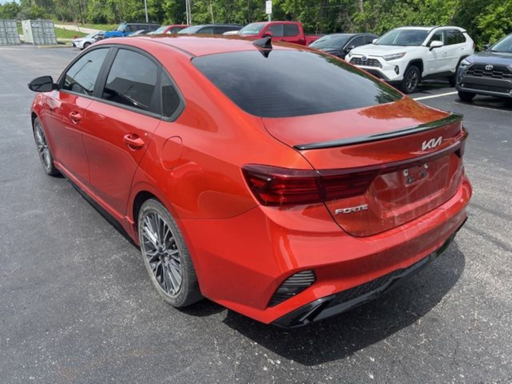 Clean CARFAX. NAVIGATION, NO ACCIDENT HISTORY ON CARFAX, Alloy wheels, Electronic Parking Brake (EPB) w/Auto Hold, Forward Collision Avoidance-Assist - Cyclist, GT-Line Technology Package, Highway Driving Assist (HDA), Navigation System, Navigation-Based Smart Cruise Control (NSCC), Smart Cruise Control, Wheels: 17" Graphite Finish Alloy. Fire Orange 2022 Kia Forte GT-Line FWD CVT 2.0L 4-Cylinder MPI