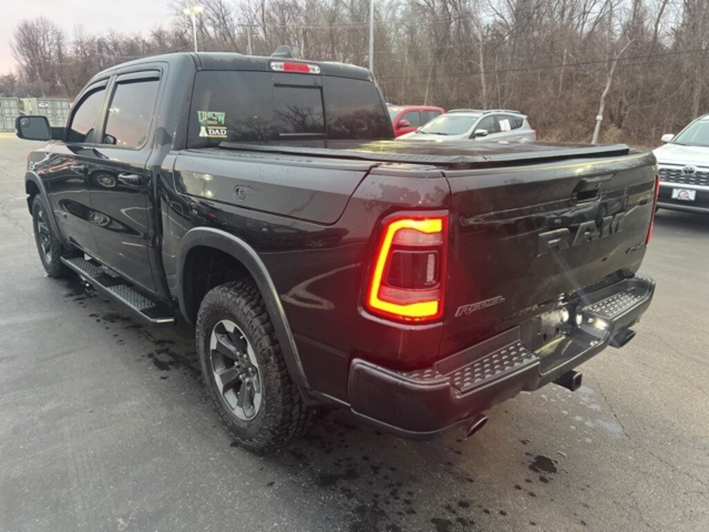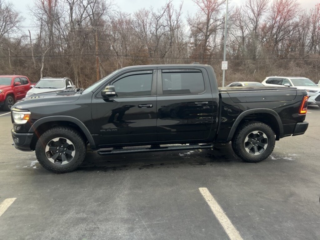 NO ACCIDENT HISTORY ON CARFAX, 115V Auxiliary Rear Power Outlet, 2 USB Full Function/Charge Only Media Hub, 8.4" Touchscreen Display, Air Conditioning ATC w/Dual Zone Control, Alloy wheels, Apple CarPlay, Auto-Dimming Exterior Driver Mirror, Auto-Dimming Rear-View Mirror, Body Color Door Handles, Cloth/Vinyl Low Back Bucket Seats, Dome Dual LED Reading Lamp, Dual-Pane Panoramic Sunroof, Exterior Mirrors Courtesy Lamps, Exterior Mirrors w/Supplemental Signals, Foam Bottle Insert (Door Trim Panel), Google Android Auto, Heated Front Seats, Heated Steering Wheel, Integrated Center Stack Radio, Overhead LED Lamps, ParkSense Front/Rear Park Assist w/Stop, Power Adjustable Pedals, Power Heated Fold Away Mirrors, Power-Folding Mirrors, Premium Overhead Console, Quick Order Package 25W Rebel, Radio: Uconnect 4 w/8.4" Display, Rain Sensitive Windshield Wipers, Rear Dome w/On/Off Switch Lamp, Rear Underseat Compartment Storage, Rear Window Defroster, Rebel Level 2 Equipment Group, Remote Proximity Keyless Entry, Remote Start System, Security Alarm, Single Disc Remote CD Player, Sun Visors w/Illuminated Vanity Mirrors, Universal Garage Door Opener, Wheels: 18" x 8" Painted Black. Diamond Black Crystal Pearlcoat 2019 Ram 1500 Rebel 4WD 8-Speed Automatic HEMI 5.7L V8 Multi Displacement VVT