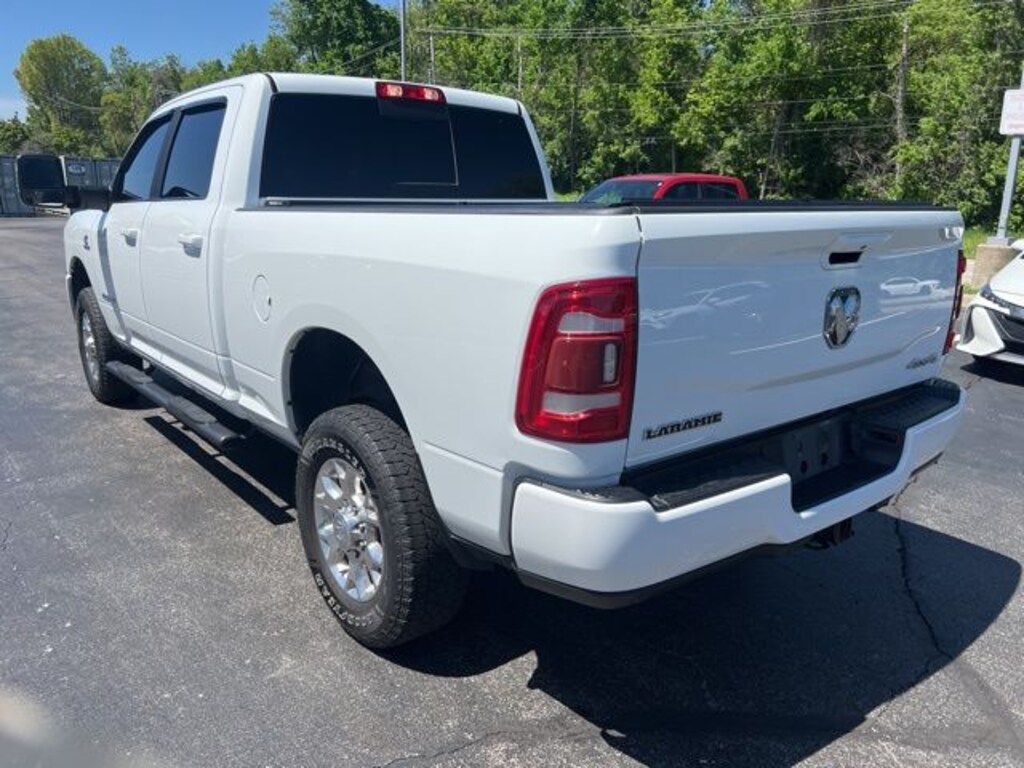 Clean CARFAX. LEATHER, NO ACCIDENT HISTORY ON CARFAX, ~~LOW MILES~~, 12" Touchscreen Display, 2nd Row In Floor Storage Bins, 4G LTE Wi-Fi Hot Spot, Alexa Built-In, Apple CarPlay, Auto Adjust In Reverse Exterior Mirrors, Auto Dim Exterior Mirror, Auto High Beam Headlamp Control, Auto Power-Folding Mirrors, Auto-Dimming Exterior Passenger Mirror, Blind Spot & Cross Path Detection, Chrome Exterior Mirrors, Connected Travel & Traffic Services, Connectivity - US/Canada, Disassociated Touchscreen Display, Exterior Mirrors Courtesy Lamps, Exterior Mirrors w/Heating Element, Exterior Mirrors w/Memory, Exterior Mirrors w/Supplemental Signals, Foam Bottle Insert (Door Trim Panel), For Details, Visit DriveUconnect.com, For More Info, Call 800-643-2112, Forward & Reverse Utility Lights, Front LED Fog Lamps, Global Telematics Box Module (TBM), Google Android Auto, GPS Antenna Input, GPS Navigation, HD Radio, Integrated Voice Command w/Bluetooth, Laramie Level 1 Equipment Group, LED Reflector Headlamps, Mirror Running Lights, Off-Road Information Pages, ParkSense Front/Rear Park Assist System, Power Adjust Mirrors, Power Adjustable Convex Aux Mirrors, Power Adjustable Pedals w/Memory, Power Heated Fold Telescopic Mirrors w/Memory, Power Telescoping Mirrors, Radio: Uconnect 5 Nav w/12.0" Display, Radio/Driver Seat/Mirrors/Pedals Memory, Rain Sensitive Windshield Wipers, Rear Power Sliding Window, Rear Window Defroster, Remote Tailgate Release, Selectable Tire Fill Alert, SiriusXM Radio Service, SiriusXM w/360L, Trailer Tow Pages. Bright White Clearcoat 2023 Ram 2500 Laramie 4WD 6-Speed Automatic Cummins 6.7L I6 Turbodiesel